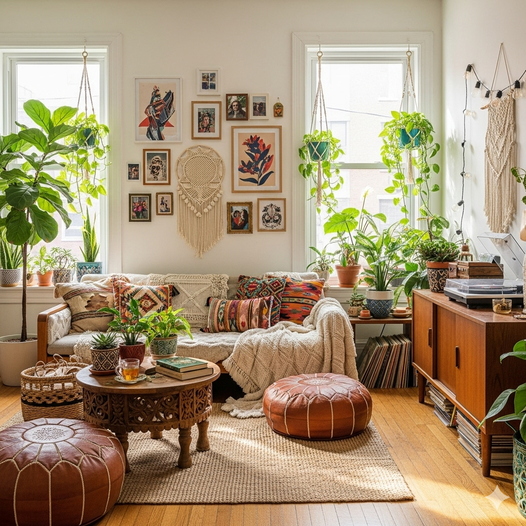 A bohemian-inspired home reflects warmth, individuality, and a connection to nature.